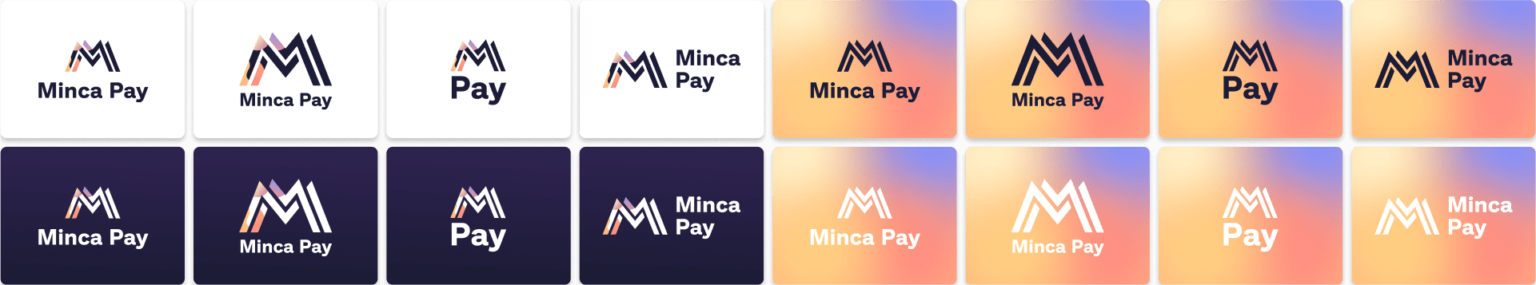 Así pues,  abordamos el reto de integrar la plataforma de pagos de Minca entre el resto de ellas manteniendo la idiosincrasia de la marca. También adaptamos la marca a diferentes distribuciones y fondos para poder ser utilizados en una gran variedad de medios digitales y físicos sin sufrir por el color de fondo, por el formato (vertical u horizontal) ni tampoco por el espacio libre alrededor.