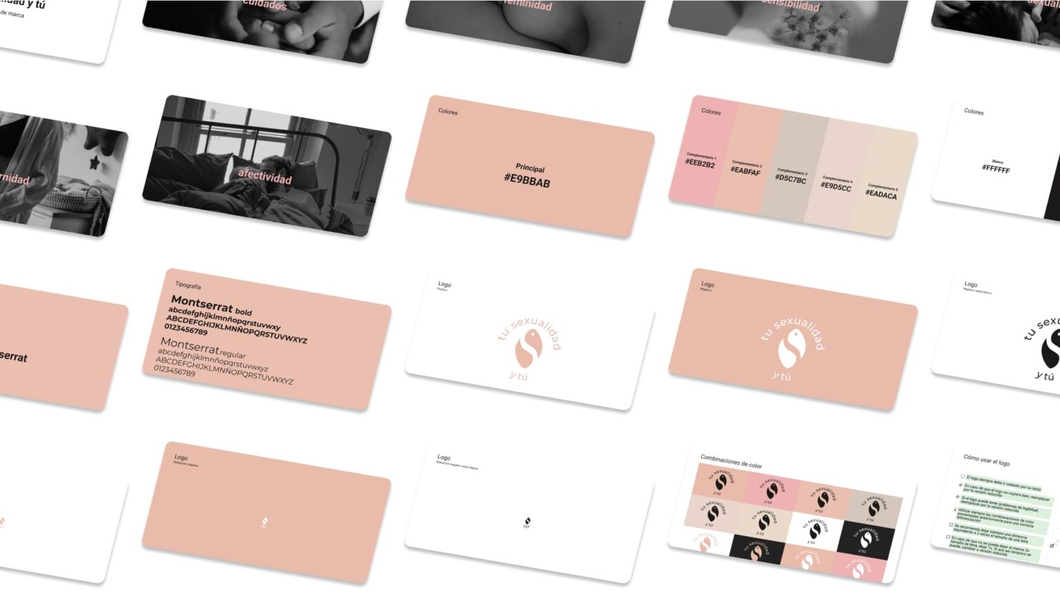La paleta cromática de Tu Sexualidad y Tú está inspirada en los tonos suaves y delicados que evocan la feminidad, el bienestar y la salud. El color principal, un rosa cálido (#E9BBAB), representa la suavidad y el cuidado, mientras que los tonos complementarios, que van desde rosas pálidos hasta beige naturales, reflejan la diversidad de experiencias femeninas y la calma.