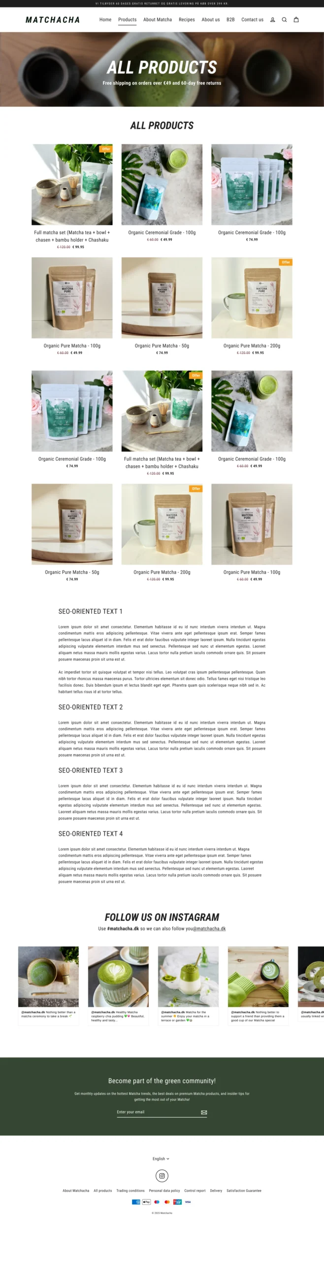 Creamos una página de productos en la que mostrar todo el catálogo de la marca. Esta página se centra en mostrar los diferentes productos de forma atractiva y fácil de navegar para acceder a los detalles del producto de la manera más rápida y convencida posible.